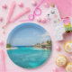 Assiettes En Carton Superbe plage tropicale Bleue avec des huttes de c
