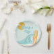 Surf UP ! Plats de surf Beach Anniversaire avec vagues turquoise et plateau de surf orange.