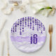 Cette élégante plaque en papier Sweet sixteen est ornée d'une gigantesque "16" en faux-parties scintillant violet et d'un ruban surplombant un arrière - plan à effet satiné orné d'un motif de bijoux suspendus. Ajoutez le nom d'un célébrant à l'aide du modèle fourni. Recherchez ID260 pour voir d'autres produits avec cette conception.
