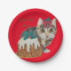 Assiettes En Carton tabby gris chaton mignon lécher patte noël