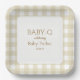 Tan gingham square baby shower plate.