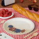 Belle plaque de papier mariage de automne de couleur terre avec terre cuite et fleurs bleu marine avec feuilles verts. Les détails de la parties scintillant d'or sont simulés. POUR PLUS DE PRODUITS CORRESPONDANTS cliquez sur la collection ci-dessus ou contactez-moi