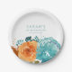 Assiette en papier boho automne terre cuite orange et sarcelle