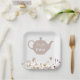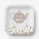 Une théière rose avec "thé pour deux" typographie à l'intérieur, ainsi que des fleurs sauvages délicats peints à l'aquarelle sur le fond. Parfait pour votre fête du thé du 2e anniversaire !