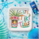 Les plaques de papier carré à thème Tropical Tiki présentent un totem Tiki peint à la main, ananas, planche de surf et perroquet avec la typographie "It's Tiki Time". Idéal pour une réception de mariage, douche à couple, luau, anniversaire, anniversaire et toute fête à thème île. Art par KL Stock
