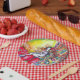 ASSIETTES EN CARTON TITANIE ASSIS SUR UNE FLEURS ROUGE