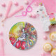 Fée colorée et fantaisiste assise sur une fleur rouge en or étincelant.Peinture acrylique avec feuille d'or et d'argent aux couleurs irisées.Titane Inspiré de Shakespeare ; Un rêve des nuits d'été (c) de Bulgan Lumini