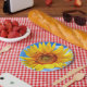 Assiettes En Carton Tournesol jaune et abeilles sur le ciel bleu - Jou