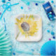 Ajoutez un joyeux ajout à une douche nuptiale d'été ou d'automne ou à la réception de mariage cocktail heure ou dîner réception lorsque vous personnalisez ces jolies Tournesol Jaune sur Plaques de papier Mariage Aquarelle Blanche. Ces élégantes plaques de papier jetable à fleurs personnalisées présentent une photo florale à effet d'aquarelle peinte numériquement d'une fleur de tournesol jaune sur la tige dans un vase en verre avec un arrière - plan blanc.
