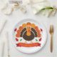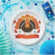Celebrate Thanksgiving in style with this festive paper plate, designed to bring warmth and charm to your holiday table. The plate features a vibrant autumnal color palette, showcasing rich hues of orange, gold, and brown. At the center, a cheerful illustration of a classic Thanksgiving turkey is surrounded by fall leaves, pumpkins, and acorns, evoking the spirit of the season. Scalloped edges add a touch of elegance, while the sturdy construction ensures the plate can hold generous servings of your favorite Thanksgiving dishes. Perfect for family gatherings, potlucks, or school events, this Thanksgiving paper plate combines practicality and seasonal cheer, making every meal feel special.