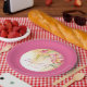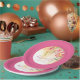 La tige Hot Pink Freesia est aquarellée sur un lave de texture tropical au coucher du soleil. La typographie gracieuse personnalise élégamment avec les initiales du couple et la date du mariage.