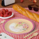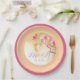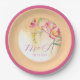 La tige Hot Pink Freesia est aquarellée sur un lave de texture tropical au coucher du soleil. La typographie gracieuse personnalise élégamment avec les initiales du couple et la date du mariage. Bordure circulaire de deux tons.