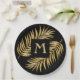 Des frondes de palmiers tropicaux élégantes et élégantes en faux or sur un arrière - plan noir avec une initiale en monogramme or sont présentées sur ces plaques en papier - disponibles en 2 tailles. Ajoute une belle touche à votre décor maison, fête ou donner comme un chaud de maison ou un cadeau d'hôtesse. COORDINATION des articles dans notre magasin —> http://bit.ly/2JTL3xH <—