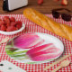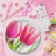 Assiettes En Carton Tulipes roses avec Feuille vert photo