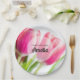 Assiettes En Carton Tulipes roses avec Feuilles verts Photo Anniversai
