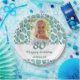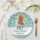 Turquoise Leaf Pattern 80th Birthday Party Photo Paper Plates. For a woman who celebrates her eightieth birthday. Elegant turquoise leaf pattern. Add your photo, name and text inside or erase it. You can change the age number.