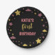 Cette petite étoile scintillante mignonne et élégante" plaque de papier d'anniversaire de premier anniversaire est ornée d'arrière - plan noir avec des étoiles et des nuages de parties scintillant faux or et rose.