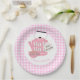 De très jolies assiettes en papier baby shower avec une mignonne bouilloire et une tasse de thé sur en vichy joli motif en plaid en rose et blanc. Un coup de coeur pour les dames qui tiennent des fêtes de thé à baby shower.
