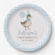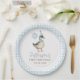 Dotée d'une jolie illustration d'un charmant canard dans une cravate à arc et un casquette de fête, cette plaque en papier est encadrée d'une douce bordure bleu pastel en vichy pour un look fantaisiste et rustique.