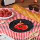 Assiettes En Carton Un seul pavot rouge en noir