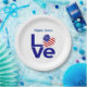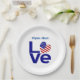 Les plaques personnalisées en papier de fête ont une place pour un nom pour vous ou un invité spécial d'honneur. Le design montre le mot LOVE en lettres bleues avec un drapeau en forme de coeur des Etats-Unis d'Amérique pour le O in love. Pour des occasions spéciales, comme 4 juillet ou fête de l'Indépendance. Idéal pour une fête au foyer pour votre patriote. Amusez-vous pour les réunions familiales aux États-Unis, ou anniversaires.
