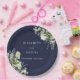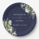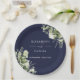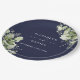 Assiettes En Carton Vert Floral Élégant Mariage bleu marine