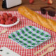 Assiettes En Carton Vert & Lavande En vichy Rayures Karo Motif
