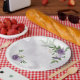 Belle mauve violette et fleurs blanches & feuilles verts contre aquarelle arrière - plan plaque de papier mariage botanique