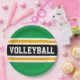 Cette conception sportive présente du texte VOLLEYBALL en gras à l'intérieur d'une large bande horizontale de course centrale noire surlignée de bandes flottantes blanches et jaunes dorées contre des bandes extérieures vertes. Le texte peut être personnalisé.