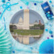 Scene from the Washington DC Mall - US Capitole, Washington Monument, Smithsonian et World War II Memorial reflecting in the Lincoln Memorial Reflecting Pool on a busy summer day