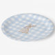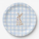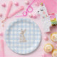 Assiettes En Carton Watercolor Blue Gingham Bunny
