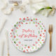 This beautiful and elegant plate features watercolor watermelon, pomegranate, strawberries, cherries and foliage. The text combines handwritten script and serif fonts for a stylish and modern look. This is perfect for a spring or summer rustic birthday party.