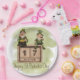 La conception de Whimsical comprend deux leprechauns perché sur le cube calendrier pour le 17 mars, avec l'arrière - plan de lavage à l'aquarelle verte mousse et personnalisable texte "Happy St. Patrick's Day" en police marron de style manuscrit.
