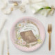 This plate has a Bible surrounded by a wreath of pink flowers in a wreath with a pink striped background with text that says "Women's Bible Study"