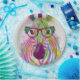 Cette impression d'aquarelle présente un portrait coloré d'un zèbre en lunettes orange ornées de fleurs | Par Fab Funky. ID d'image : 192221D