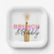 Assiettes en papier minimalistes et uniques pour votre brunch de mariage. Les assiettes en papier pour le brunch sont facilement personnalisables avec votre nom dans un style serif mettant en vedette le Brunch et Bubbly en écriture calligraphique.