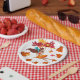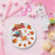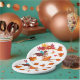 Une assiette de fête orange festive avec des feuilles qui tombent et une fille sur une balançoire