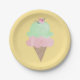 Assiettes en papier jaune clair cône de glace à l'aquarelle.