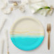 Rivage océanique, eau sarcelle, plage de sable, assiettes en papier parfaites pour un mariage ou une baby shower sur le thème de la plage.