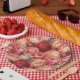 L'assiette de fête en papier est illustrée d'une belle impression de fleurs de pivoine.