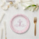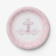 Assiettes en papier pour baptême de fille avec une belle croix tourbillonnante de perles roses sur fond damassé rose. Ces élégantes assiettes en papier roses pour baptême sont facilement personnalisables en ajoutant simplement du texte. Vous pouvez également déplacer la croix selon vos besoins sur ces assiettes en papier damassées roses pour baptême, christening et première communion.