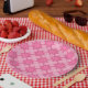 Assiettes en papier rose et blanc