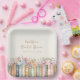 Servez vos invités avec élégance sur nos assiettes en papier pour une baby shower sur le thème des livres, qui font partie de la belle collection "Fleurs sauvages et livres". Ces assiettes sont ornées d'illustrations exquises aquarelles peintes à la main de livres et de fleurs sauvages dans des teintes douces de rose, de bleu, de vert et d'or, sur un fond ivoire sophistiqué. Chaque assiette combine la grâce d'une police de machine à écrire vintage rétro avec la touche moderne de l'écriture manuscrite dorée tendance, assurant que votre décoration de table soit aussi enchanteresse que la célébration elle-même. Parfaites pour ajouter une touche littéraire à votre expérience culinaire, ces assiettes sont non seulement décoratives mais également robustes, les rendant idéales pour accueillir un festin digne de votre occasion spéciale.