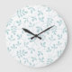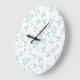 Assorted Leaves Pattern Duck Egg Blue on White Large Clock