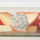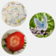 Assorted stickers. Snowflake, blue butterfly, sliced strawberry top.
