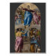 The Assumption of the Virgin by El Greco, c. 1577, is an arched oil on canvas altarpiece painting of the Virgin Mary leaving her intended tomb and rising to Heaven. Angels, saints, cherubs, and the heavenly hosts surround the serene figure as she ascends, while below saints and apostles watch in wonder at her empty crypt. El Greco constructs the tall vertical composition with his trademark elongated figurative forms, bold brilliant colour and vivid, painterly brushstrokes to tie the realms of Earth and Heaven together as the mother Mary ascends to her place in eternity.