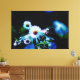 Beautiful tiny white and yellow asters aglow in the moonlight. reflections of blue and green and pink against a black background make it stunning