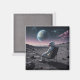 An astronaut in spacesuit sitting in a lawn chair on the moon.
