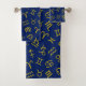 Astrology Sign Symbols Pattern Gold+Dk Blue Bath Towel Set