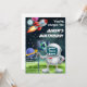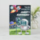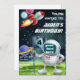 A customizable cartoon astronaut and space rocket children's birthday invite with a cute cartoon spaceman on an alien moon with a red and silver rocket ship. With a space in the helmet for your child's face! Easily personalized with the details of your birthday party and face, just change the text, or for greater control use the "customize it" button. All artwork copyright protected.